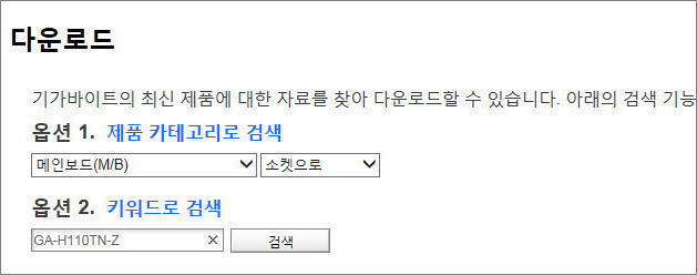 옵션 2. 메인보드 모델명을 정확히 입력해 주세요.