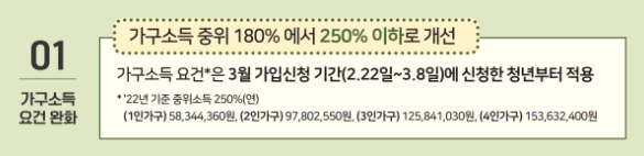 가입자는 가구원의 중위소득 180% 이하 조건을 충족해야 합니다. 가구원에는 본인 외에도 배우자, 부모, 자녀, 형제·자매 등이 포함됩니다. 가구소득 기준은 가계의 실질적인 소득 수준을 반영하기 때문에, 소득 구조가 복잡한 경우에도 명확한 가이드라인을 제공합니다.