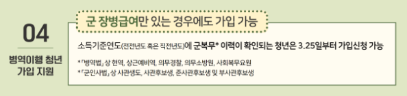 가입 가능한 나이는 만 19세부터 34세까지입니다. 다만, 병역 의무를 이행한 경우 최대 6년까지 나이에서 제외되므로, 실제로 만 40세까지도 가입이 가능할 수 있습니다. 이러한 유연한 나이 조건은 병역 이행으로 경제 활동이 늦어진 청년들에게 큰 기회를 제공합니다.
